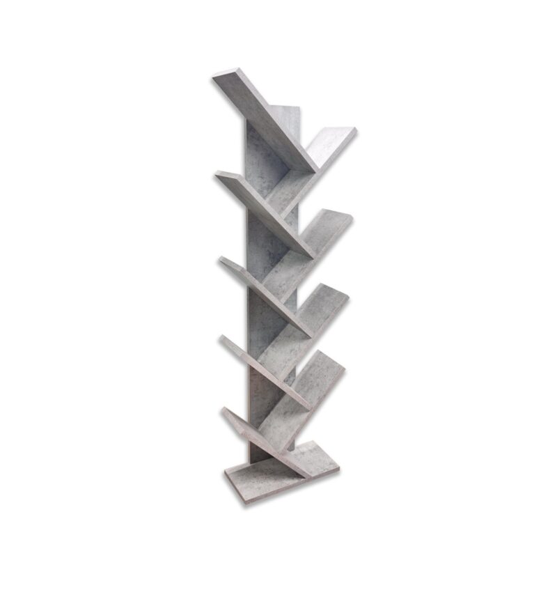 Made of melamine-faced chipboard with a concrete decor , the shelf is sturdy, easy to clean and perfect for industrial or minimalist interiors. Each shelf is angled for secure book support, and the vertical shape saves space.