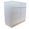 White dresser with 4 practical drawers and round metal knob handles.
