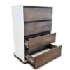 Comodă albă cu 4 sertare finisaj nuc închis – design modern, 4S/FI/FM