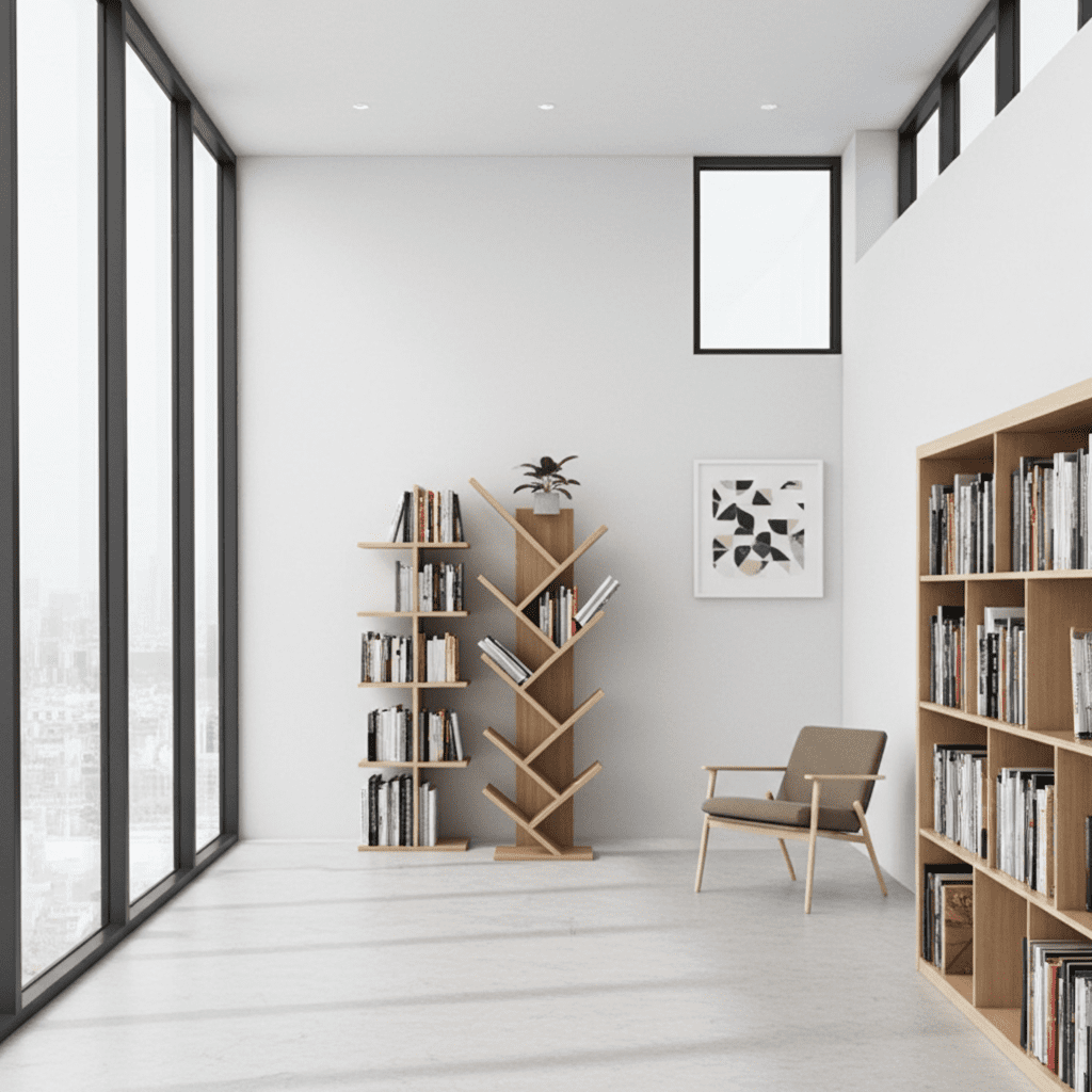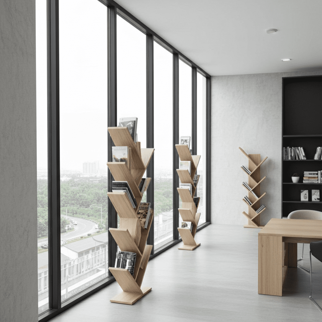 Descoperă etajera verticală tip copac – o piesă de mobilier ingenioasă și elegantă, perfectă pentru organizarea cărților sau decorului tău preferat. Cu un design modern în formă de ramuri înclinate, această etajeră adaugă un accent stilat oricărui living, birou sau dormitor.