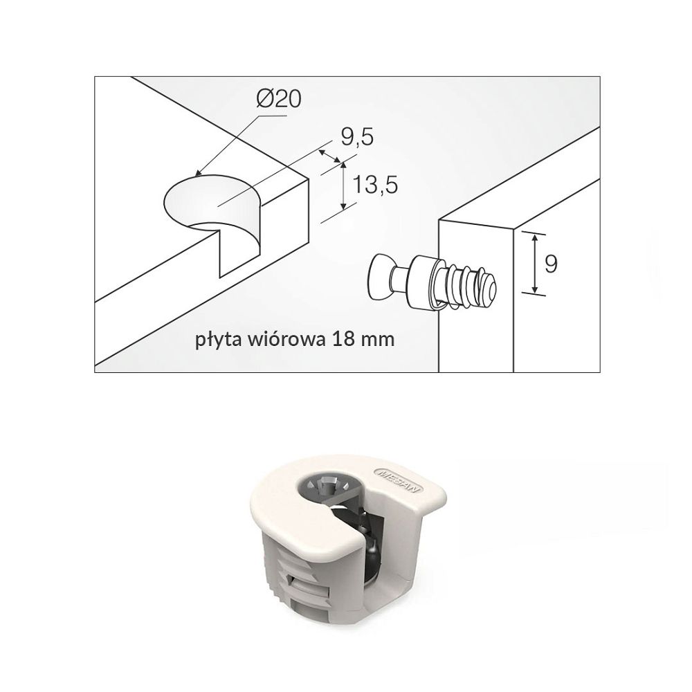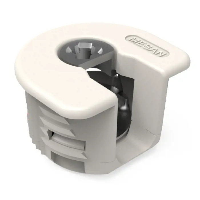 Raffix Mesan D20 este un conector demontabil alb cu excentric metalic, ideal pentru îmbinări ascunse în mobilier. Se montează rapid și oferă fixare sigură și estetică.