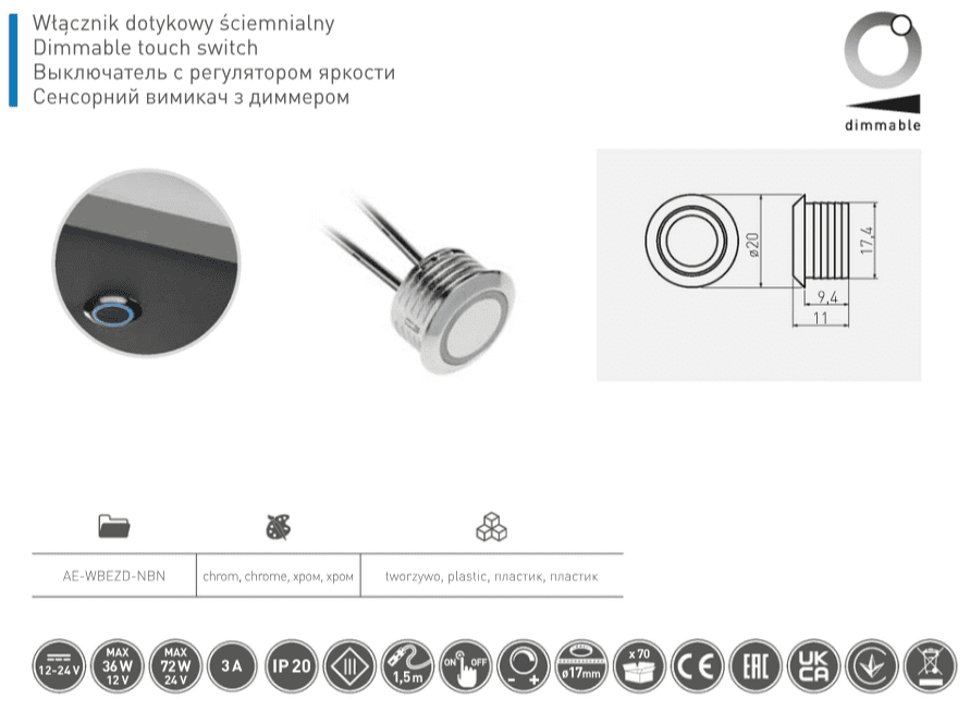 Una dintre modalitățile de a ușura viața de zi cu zi într-un spațiu modern este întrerupătorul tactil cu funcție de reglare a luminozității (dimmer). Un avantaj incontestabil este dimensiunea sa redusă, comparabilă cu cea a unui nasture. În combinație cu montajul ascuns, se asigură o estetică discretă și minimalistă.