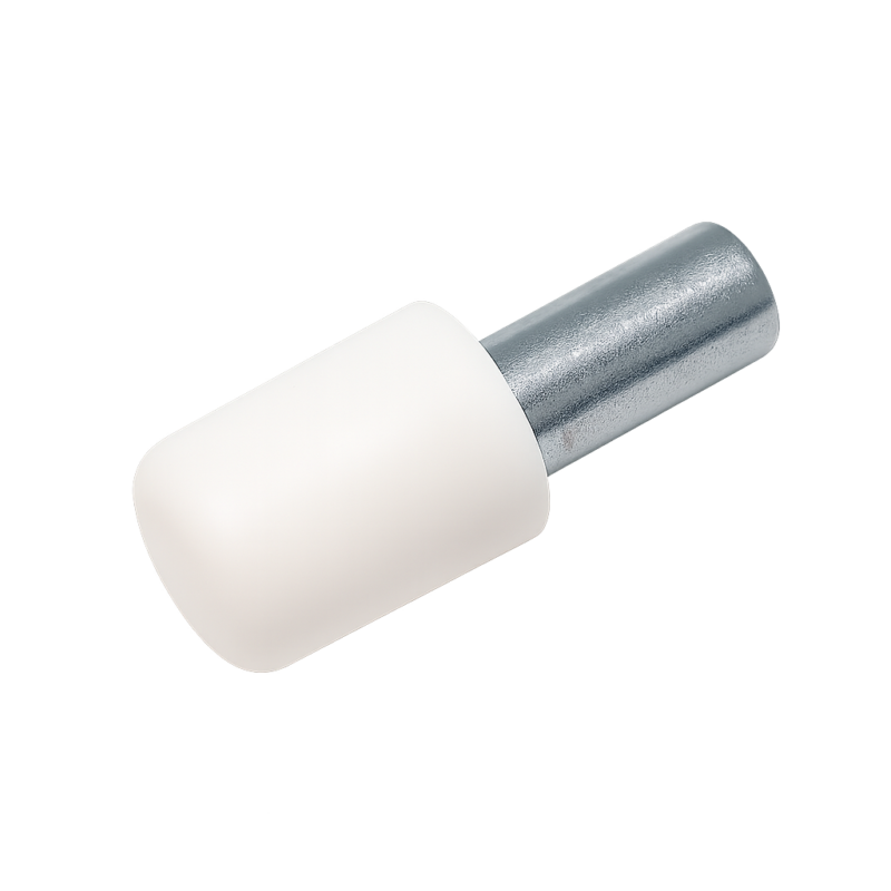 Белый держатель для полок из металла с силиконовой вставкой обеспечивает надёжную и незаметную фиксацию. Идеален для мебели с открытыми полками.