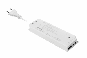 Блок питания является сердцем всей системы. Он должен быть эффективным и надежным. Так обстоит дело с блоками питания EASY CLICK. Это ультраспециализированный импульсный блок питания с предварительно смонтированным шнуром питания и встроенными разъемами mini AMP. В зависимости от источника питания, у пользователя есть от 3 до 6 разъемов mini AMP. Блок питания GTV Easy Click соответствует самым высоким европейским стандартам. Благодаря корпусу SLIM блок питания легче спрятать в промежутках между шкафами.